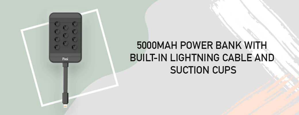 5000 mAh Power Bank with built-in Lightning Cable and Suction Cups: