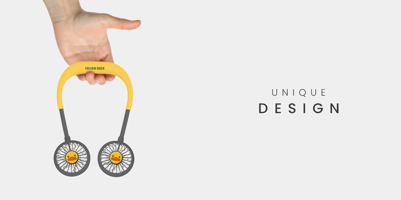 4. A Pivoi USB rechargeable, battery-operated neck fan ergonomically designed allows you to hang the fan around your neck comfortably. This hanging USB neck fan has a 2000 mAh lithium battery for extended operational hours. With 7 color LED lights, you can wear this portable neck fan while out on your night run to keep you cool as well as act as an indicator light.